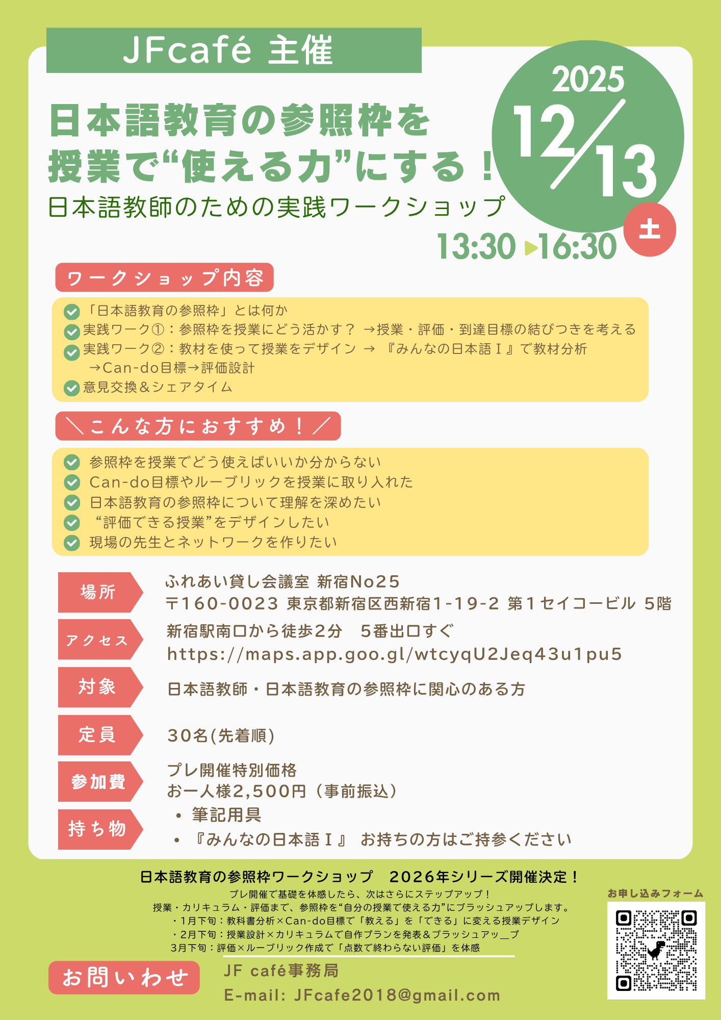 2025年12月13日(土)日本語教育の参照枠を授業で“使える力”にする! — 日本語教師のための実践ワークショップ プレ開催 —