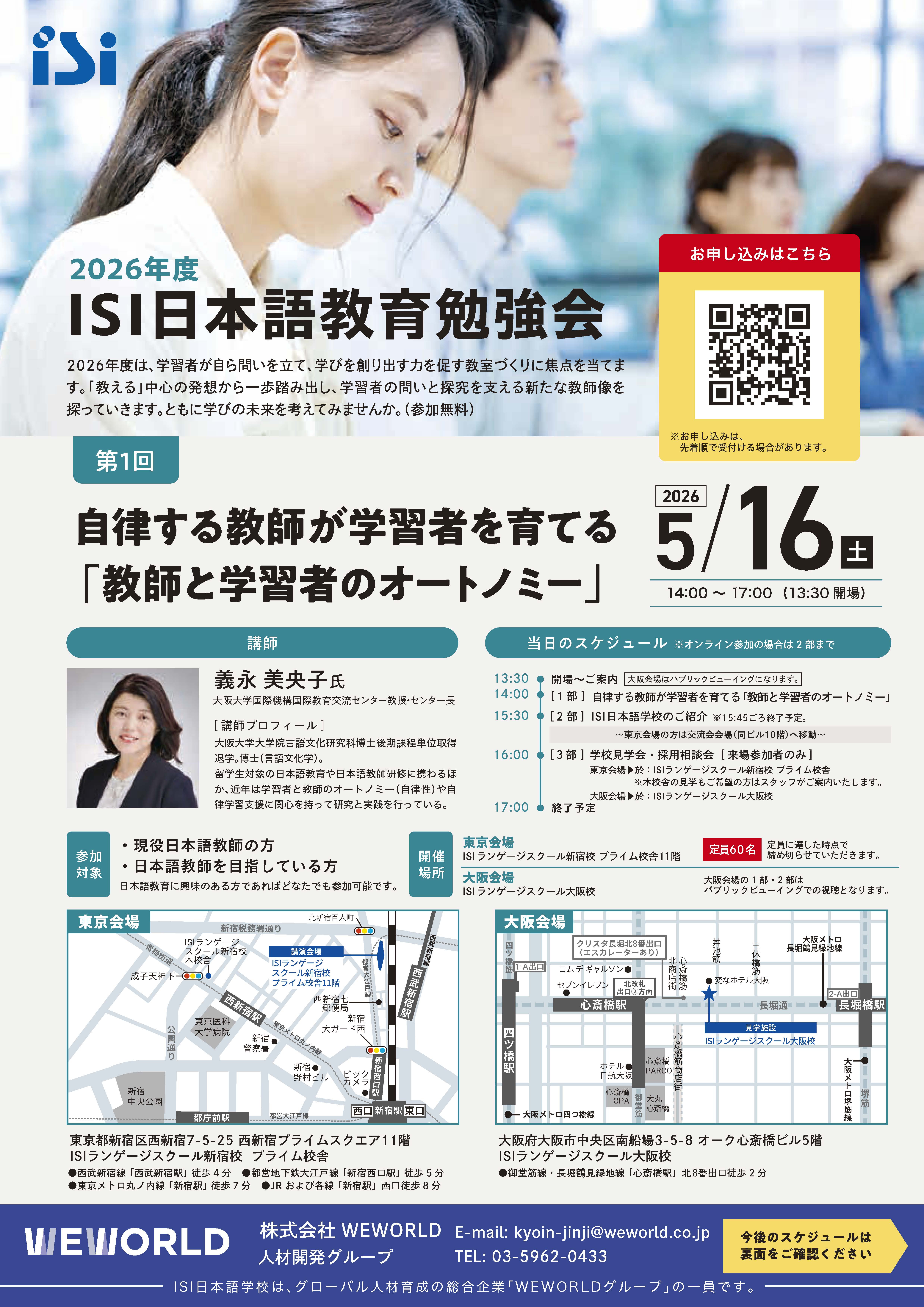 2026年5月16日(土)ISI日本語教育勉強会 第1回「自律する教師が学習者を育てる『教師と学習者のオートノミー』」